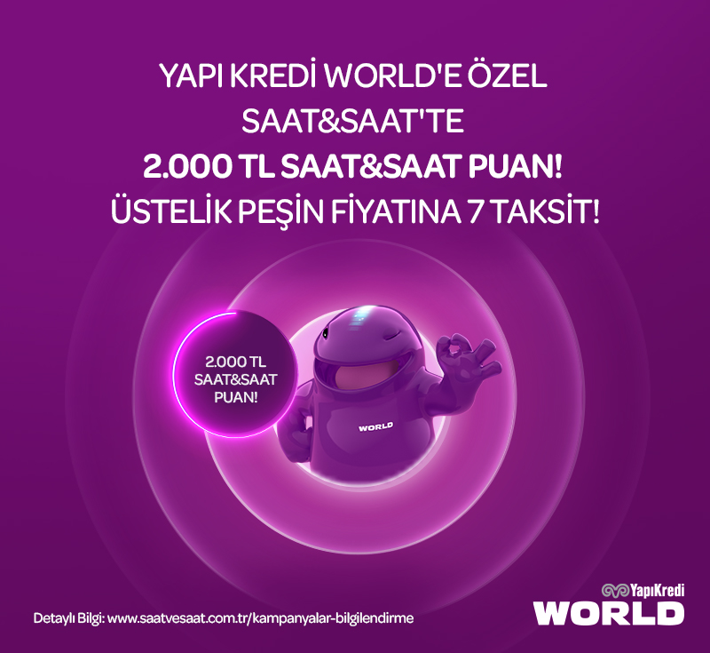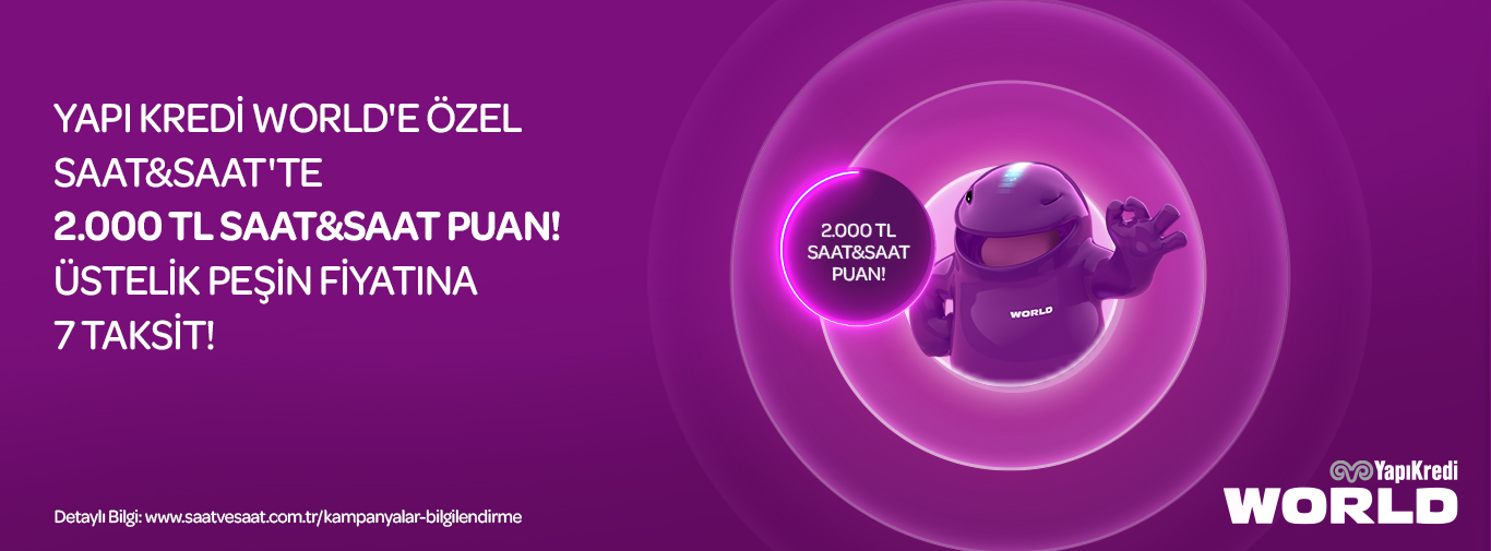 • World kampanyası kapsamında 16-31 Ocak 2026 tarihleri arasında Saat&Saat mağazalarından ve online alışverişinizde tek seferde yapılacak peşin veya taksitli 10.000 TL ve üzeri alışverişlere 2.000 TL değerinde Saat&Saat puan kazanılacaktır.