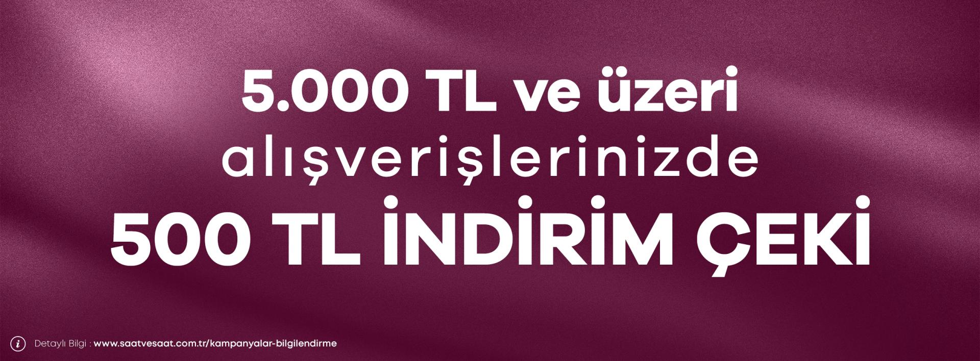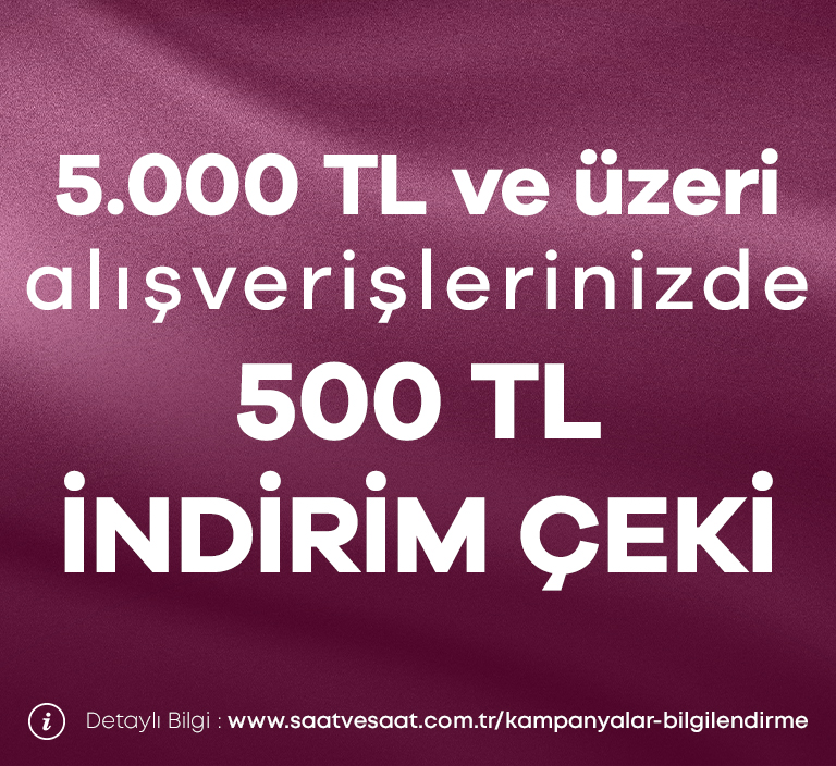 • İndirim çeki, 1 Aralık 2025 - 31 Ocak 2026 tarihleri arasında saatvesaat.com.tr üzerinden veya mağazalarımızdan yapılacak 3.000 TL ve üzeri sezon ürünü saat ve takı alışverişlerinde 500 TL ek indirim sağlar.